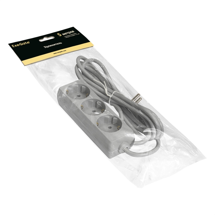 Удлинитель ExeGate ECE-3-5G (3 евророзетки с заземлением, 5м, серый)