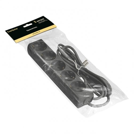 Удлинитель ExeGate ECE-5-5B (5 евророзеток с заземлением, 5м, черный)