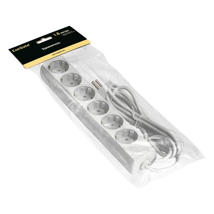 Удлинитель ExeGate ECE-6-1.8W (6 евророзеток с заземлением, 1.8м, белый)