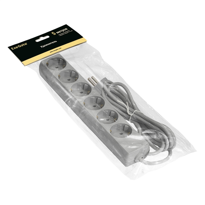 Удлинитель ExeGate ECE-6-5G (6 евророзеток с заземлением, 5м, серый)