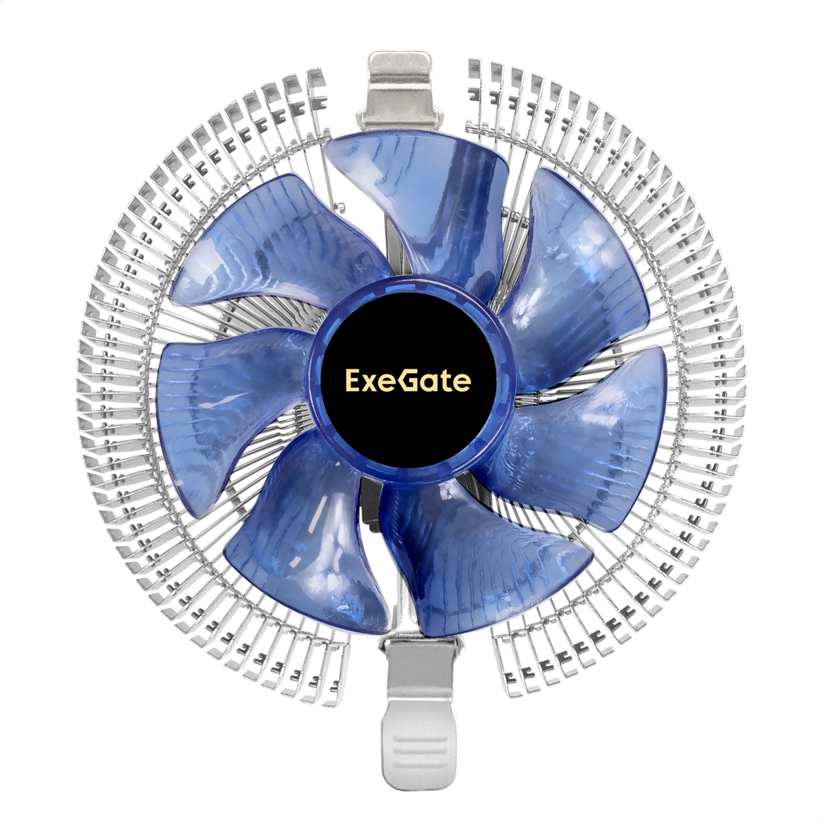 Кулер ExeGate Wizard EE91-BLUE (Al, LGA775/1150/1151/1155/1156/1200/1700/1851/AM2/AM2+/AM3/AM3+/AM4/AM5/FM1/FM2/754/939/940, TDP 75W, Fan 90mm, 2200RPM, Hydro bearing, 3pin, 22db, 170г, голубая подсветка, с термопастой, на защелках, Color Box)