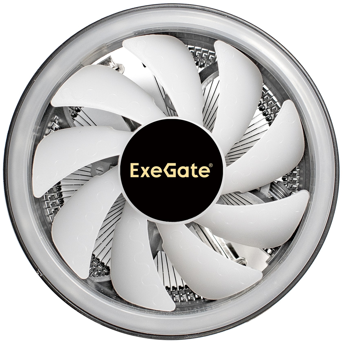 Кулер ExeGate Dark Magic EE126R-PWM.RGB (Al, черное покрытие, LGA775/1150/1151/1155/1156/1200/1700/1851/AM2/AM2+/AM3/AM3+/AM4/AM5/FM1/FM2/754/939/940, TDP 100W, Fan 120mm, PWM, 900-2000RPM, Hydro bearing, 4pin, 11-24db, 290г, RGB подсветка, с термопастой, на защелках, Color Box)