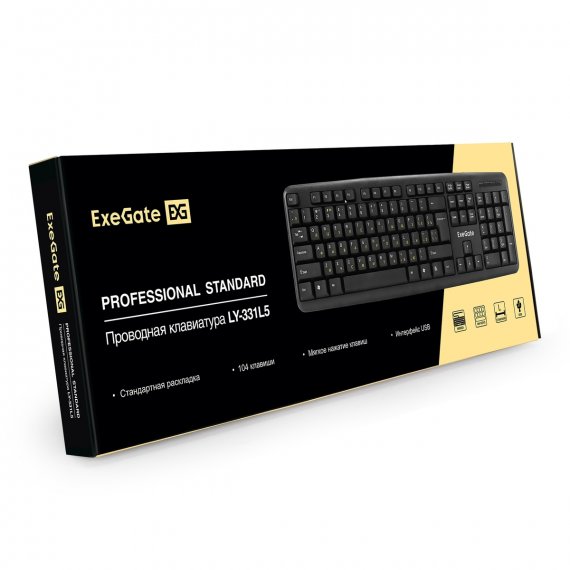 Клавиатура ExeGate Professional Standard LY-331L5 (USB, полноразмерная, влагозащищенная, 104кл., Enter большой, длина кабеля 2,55м, черная, Color box)