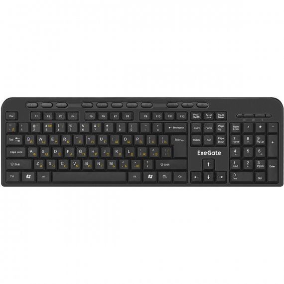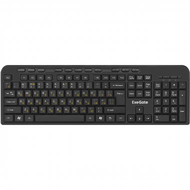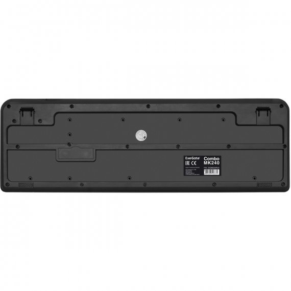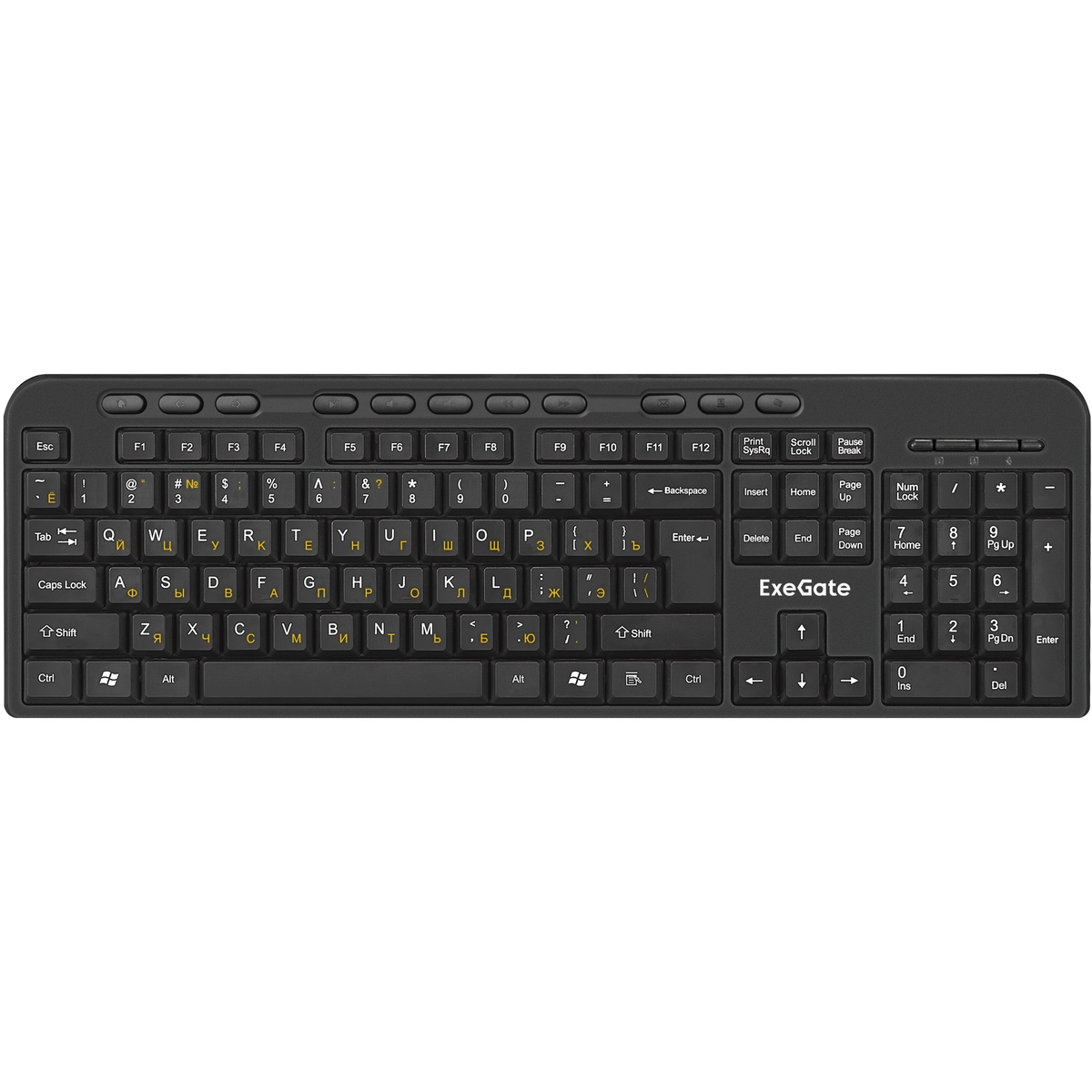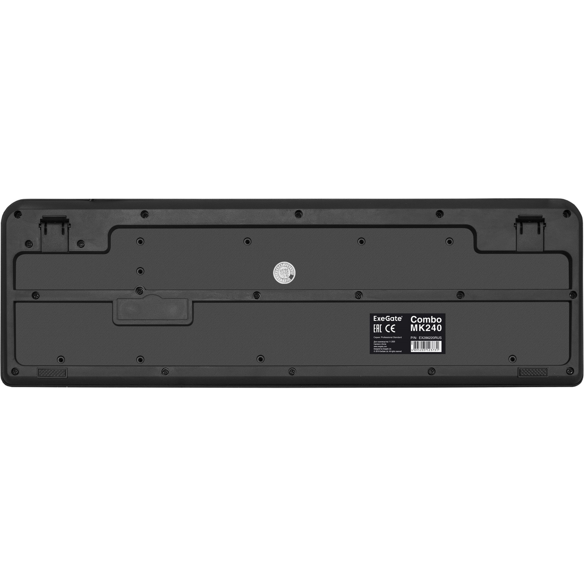 Комплект беспроводной ExeGate Professional Standard Combo MK240 (клавиатура мультимедийная полноразмерная влагозащищенная 115кл. + мышь оптическая 800/1000/1200dpi, 4 кнопки и колесо прокрутки; USB, радиоканал 2,4 ГГц, радиус действия до 10м, черный, Color Box)