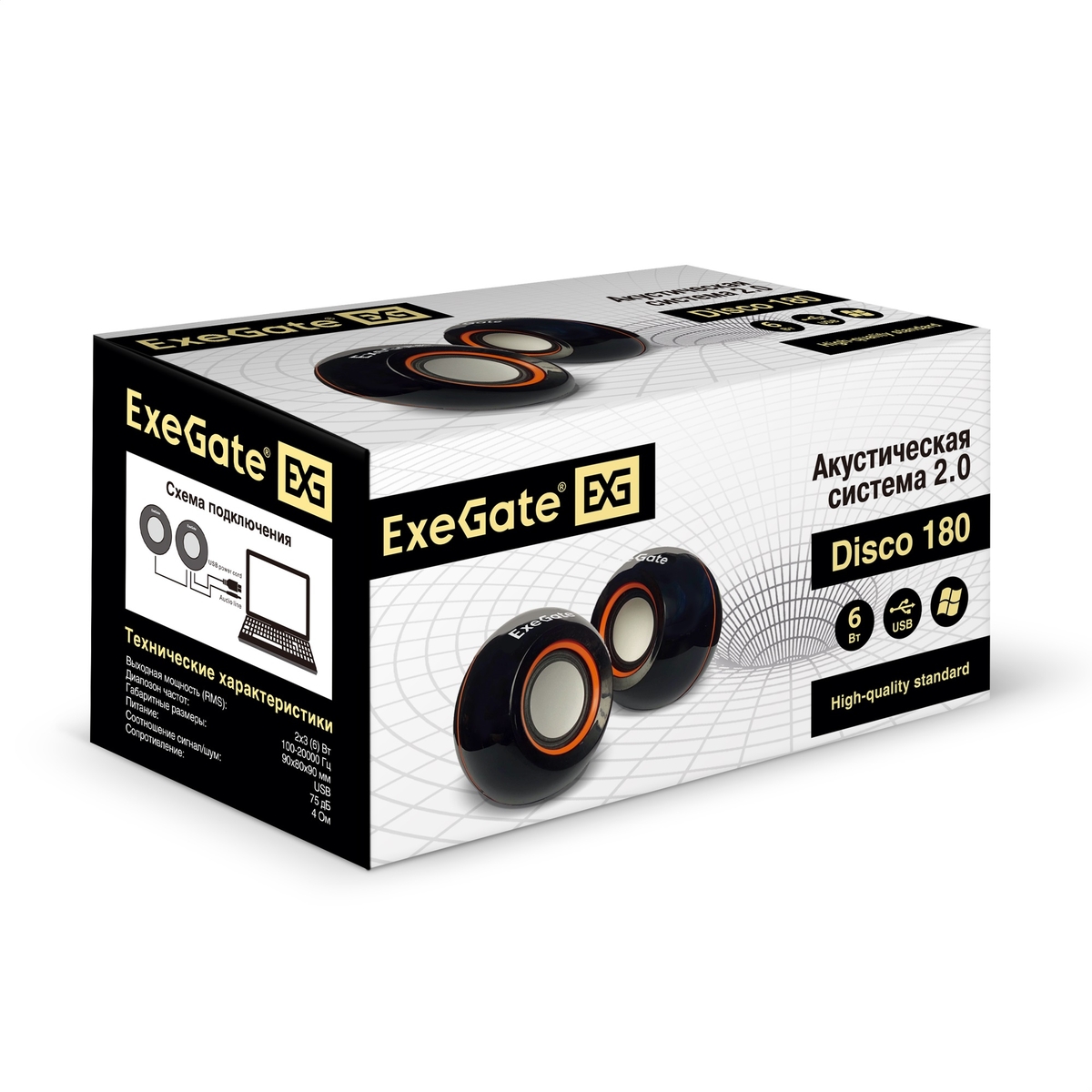 Акустическая система 2.0 ExeGate Disco 180 (питание USB, 2х3Вт (6Вт RMS), 100-20000Гц, черный, Color Box)