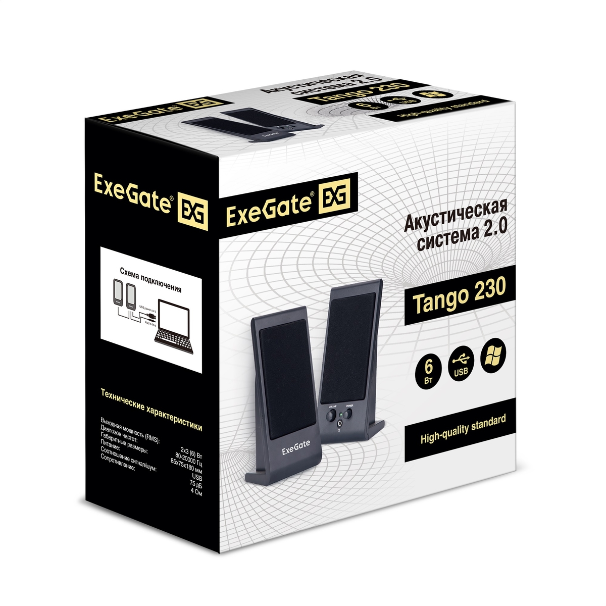 Акустическая система 2.0 ExeGate Tango 230 (питание USB, 2х3Вт (Вт RMS), 80-20000Гц, черный, Color Box)