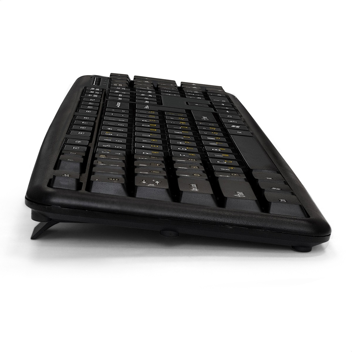 Проводной комплект. Влагозащищенная от брыз клавиатура. Для работы не требуются драйвера.