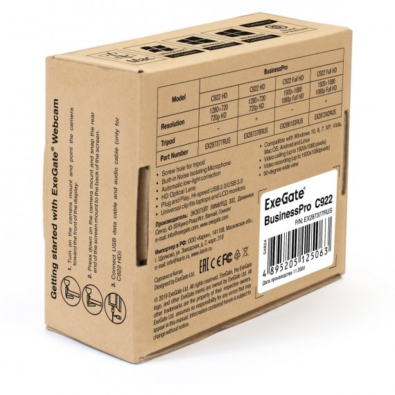 Веб-камера ExeGate BusinessPro C922 HD предназначена для удовлетворения стандартных потребностей бизнес-пользователей, предъявляющих высокие требования к качеству изображения, идеально подходит для использования как в бытовых целях, так и для использования в бизнесе.