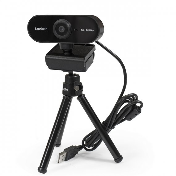 Веб-камера ExeGate Stream C925 Full HD T-Tripod (2Мп, 1920х1080, 1080P, 30fps, поддержка H.264, фиксированный фокус, телескопический штатив Tripod Tele Ball, 4-линзовый объектив, микрофон с шумоподавлением, универсальное крепление, USB, кабель 1,5 м, Windows® 7/8/10/11, Mac OS 10.6 и выше, Chrome OS™, Android 5.0 и выше, черная, RTL)