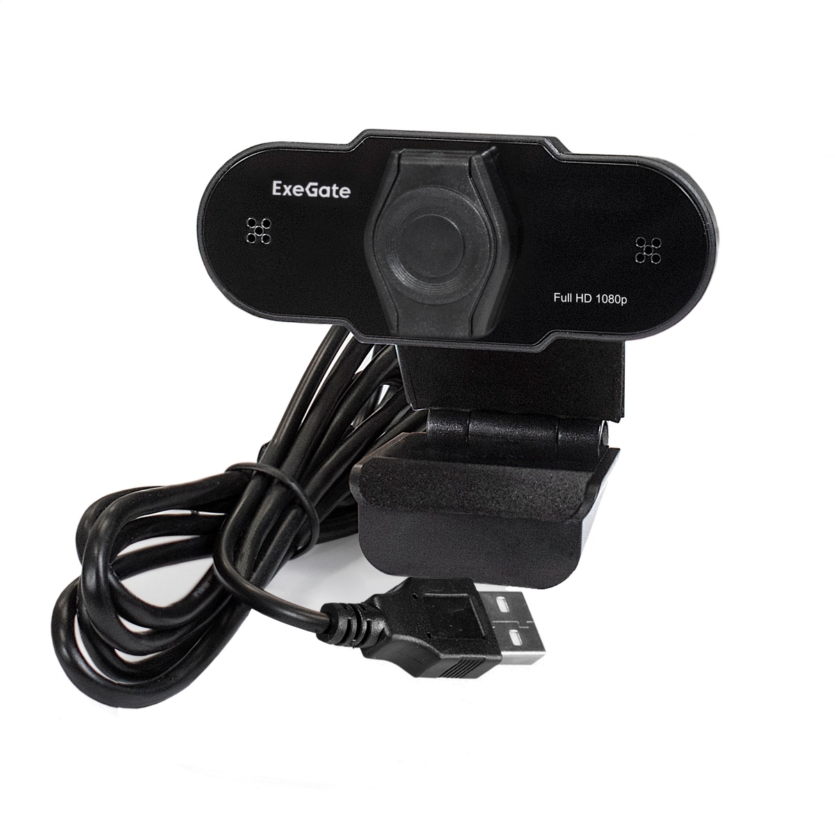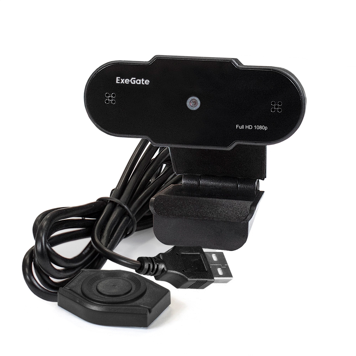 Веб-камера ExeGate BlackView C615 Full HD Tripod (2Мп, 1920х1080, 1080P, 30fps, защитная шторка, штатив Flex в комплекте, фиксированный фокус, 4-линзовый объектив, микрофон с шумоподавлением, универсальное крепление, USB, кабель 1,5 м, Windows® 7/8/10/11, Mac OS 10.6 и выше, Chrome OS™, Android 5.0 и выше, черная, RTL)