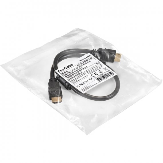 Кабель HDMI ExeGate EX-CC-HDMI2-0.5F (19M/19M, v2.0, 0,5м, 4K UHD, Ethernet, ферритовые кольца, позолоченные контакты)