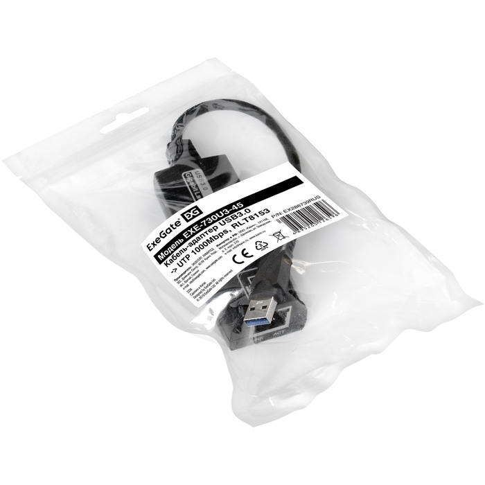 Кабель-адаптер ExeGate EXE-730U3-45 (USB3.0 --> 1xRJ45 UTP 1000Mbps, Realtek Chipset RTL8153)