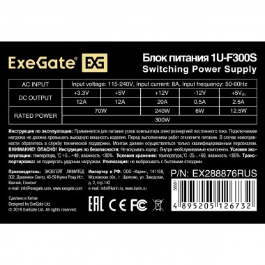 Блок питания 300W ExeGate F300S (Flex ATX, for ITX case, 4cm fan, 24pin, (4+4)pin, 3xSATA, 2xIDE)