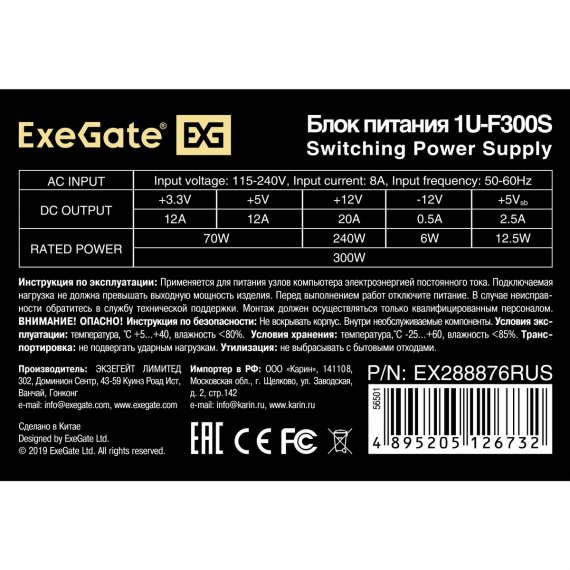 Exegate EX288876RUS Блок питания 300W F300S