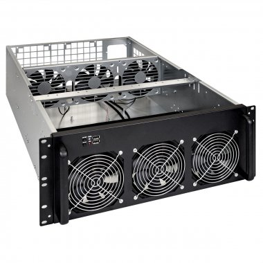 Корпус для майнинга ExeGate Pro 8-650 <без БП, 2*USB, 6*fan 120мм, места под: 8 видеокарт, 1 БП, RM 4U>