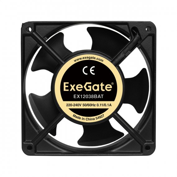 Вентилятор 220В AC ExeGate EX12038BAT (120x120x38 мм, 2-Ball (двойной шарикоподшипник), клеммы, 2700RPM, 42dBA)