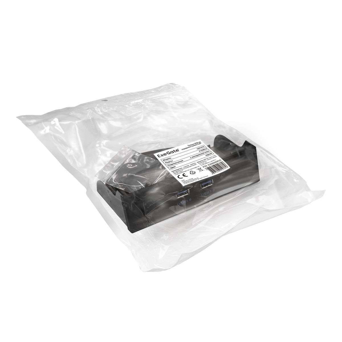 Планка USB на переднюю панель ExeGate U5H-615, 5,25", 2*USB3.0, черная, металл, подсоед. к MB