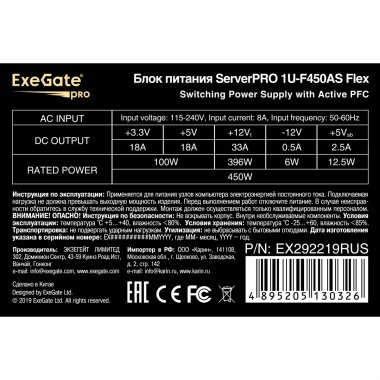 Exegate EX292219RUS Серверный БП 450W ServerPRO-1U-F450AS