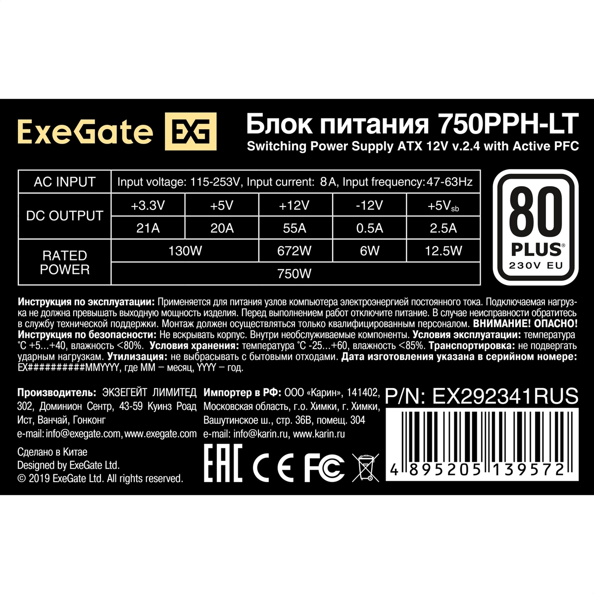 Exegate EX292341RUS Блок питания 750W 80 PLUS® 750PPH-LT
