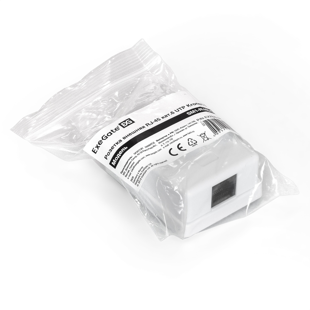 Розетка внешняя ExeGate SM1-RJ45-C6 RJ-45 кат.6 UTP Krone/110