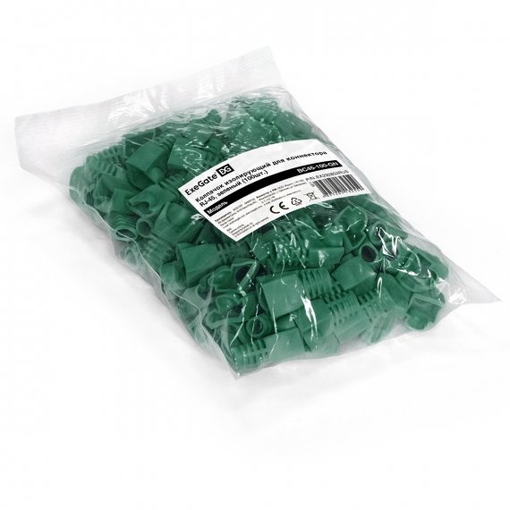 Колпачок ExeGate BC45-100-GN изолирующий для коннектора RJ-45, зеленый (100шт)
