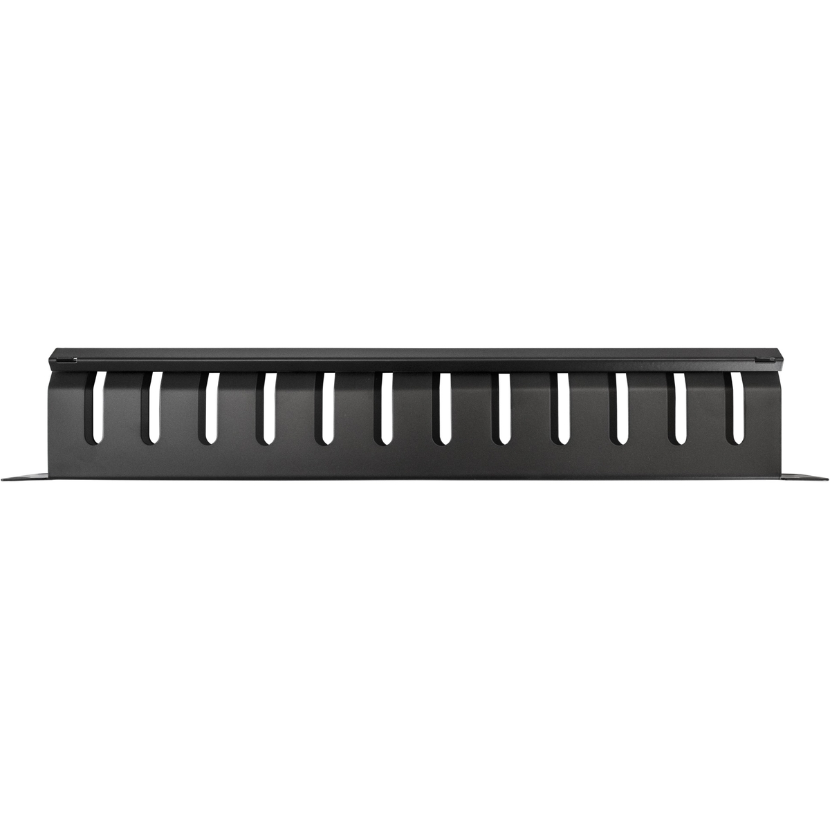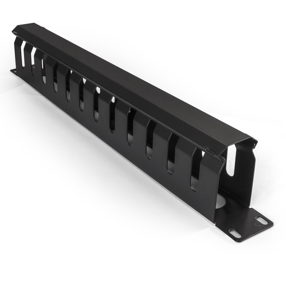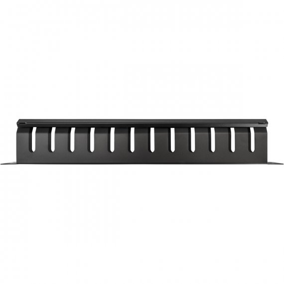 Кабельный органайзер ExeGate CM19-1U-12M-CV (горизонтальный 19" 1U, металлический, 2 окна в основании профиля, гребенка на 12 вырезов, глубина 70мм, с металлической крышкой на защелках, цвет черный, RTL)