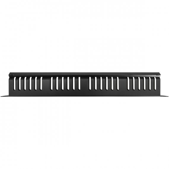 Кабельный органайзер ExeGate CM19-1U-24M-CV (горизонтальный 19" 1U, металлический, 2 окна в основании профиля, гребенка на 24 выреза, глубина 70мм, с металлической крышкой на защелках, цвет черный, RTL)