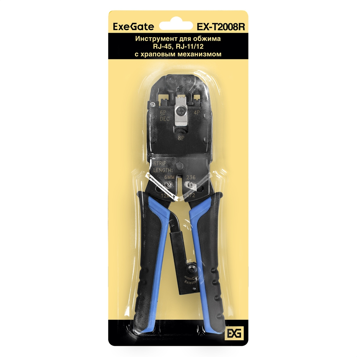 Инструмент ExeGate EX-T2008R для обжима RJ-45, RJ-11/12 с храповым механизмом (прямой ход обжимки)