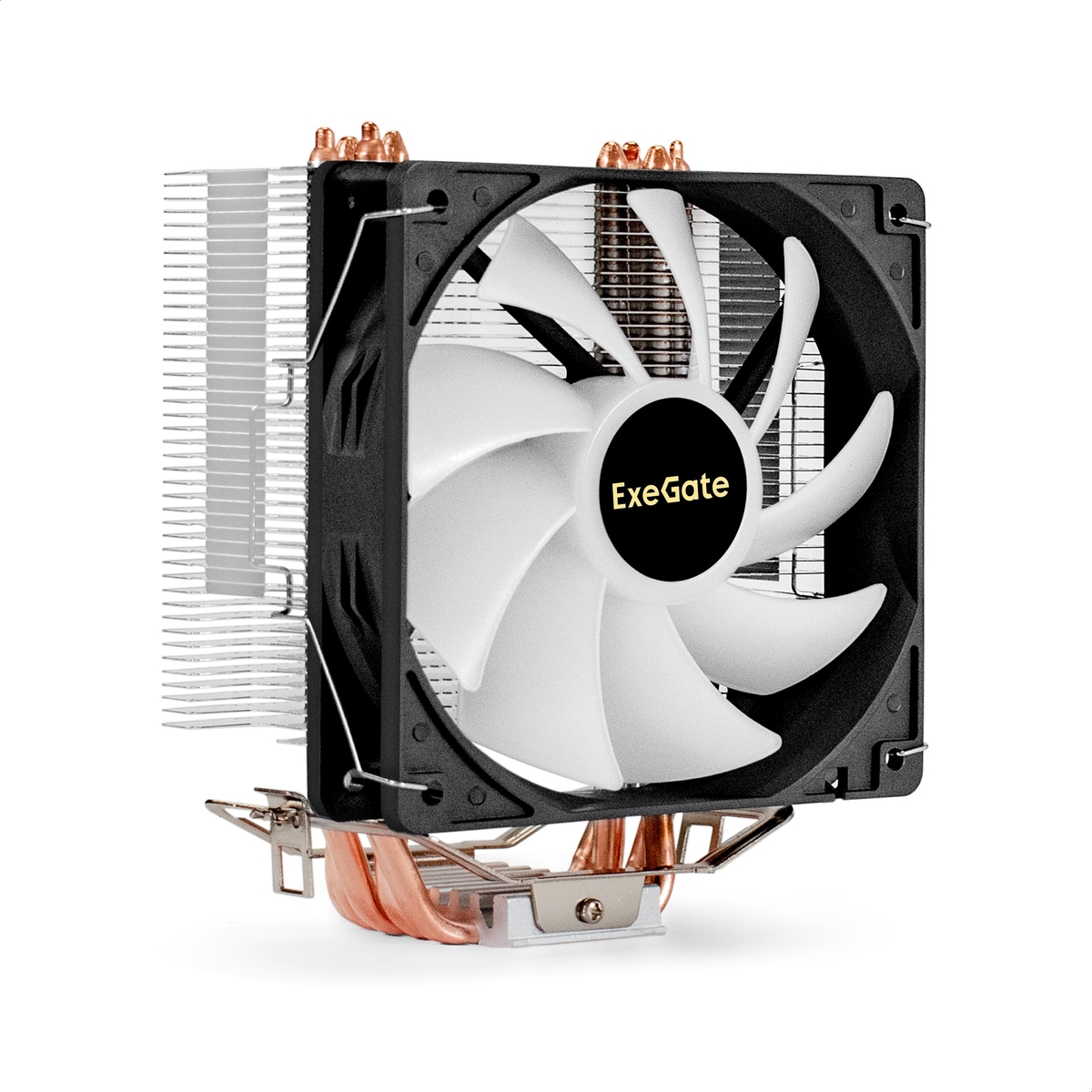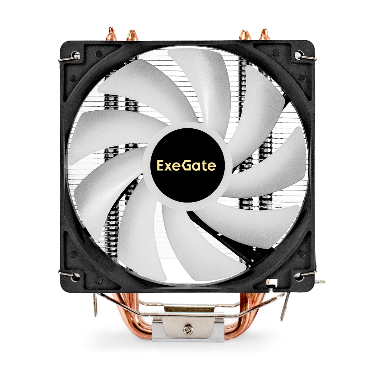 Кулер ExeGate Wizard EXX400V2-PWM.FRGB (Al+Cu, 4 тепл.трубки, LGA775/1150/1151/1155/1156/1200/1700/1851/AM2/AM2+/AM3/AM3+/AM4/AM5/FM1/FM2/754/939/940, TDP 140W, Fan 120mm, PWM, 800-2400RPM, Hydro bearing, 4pin, 11-24db, 585г, FRGB подсветка, с термопастой, на защелках, Color Box)