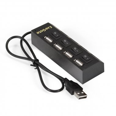 USB-Хаб (концентратор) 4-в-1 ExeGate DUB-42SW (кабель-адаптер USB2.0 --> 4xUSB2.0, кнопки включения/отключения для каждого порта, Plug&Play, черный)