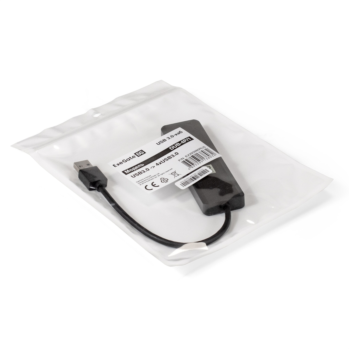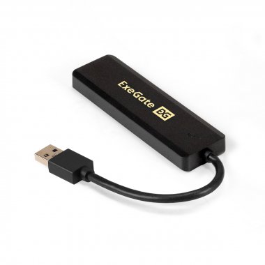 USB-Хаб (концентратор) 4-в-1 ExeGate DUB-4P/1 (кабель-адаптер USB3.0 --> 4xUSB3.0, доп. разъем USB Type-C для подключения источника питания, Plug&Play, черный)