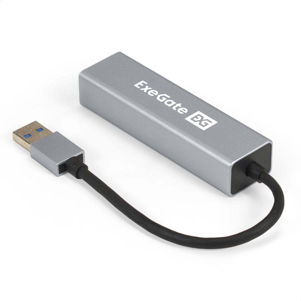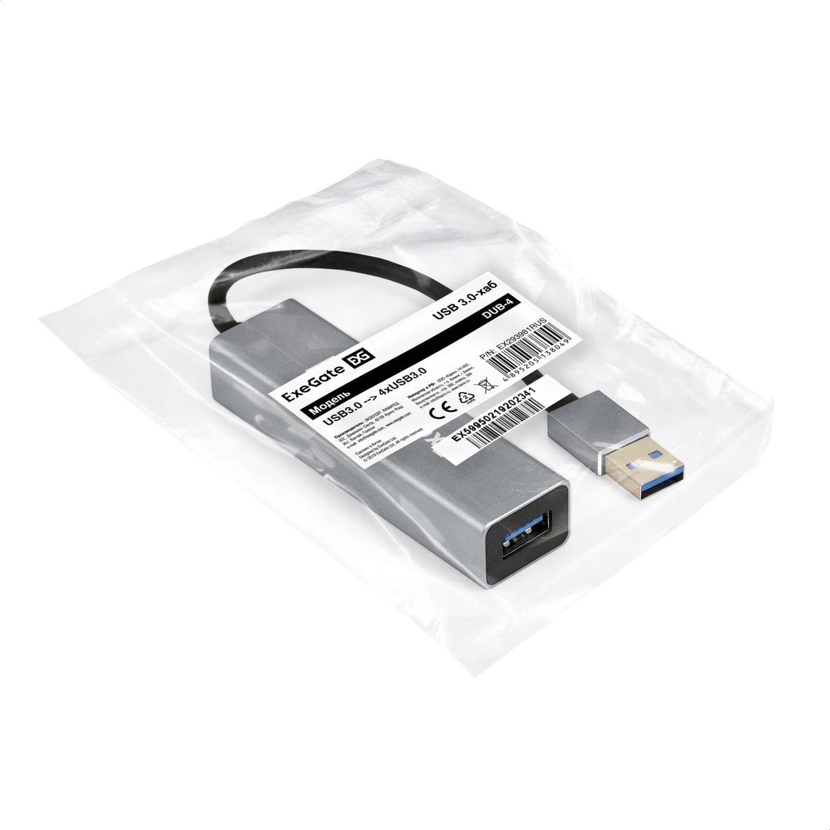 USB-Хаб (концентратор) 4-в-1 ExeGate DUB-4 (кабель-адаптер USB3.0 --> 4xUSB3.0, Plug&Play, корпус алюминиевый, серебристый)