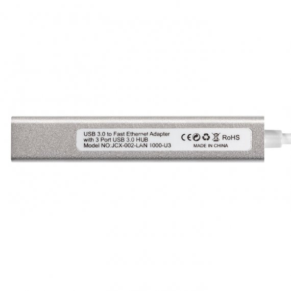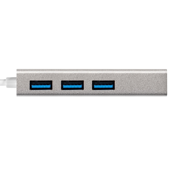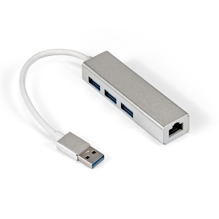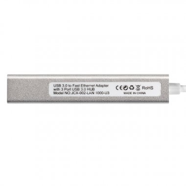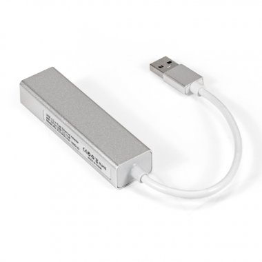 Кабель-адаптер ExeGate EXE-77U3T-45 (USB3.0 --> 3xUSB3.0 + 1xRJ45 UTP 1000Mbps RTL8153, корпус алюминиевый, серебристый)