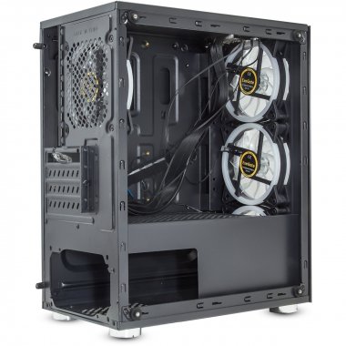 Корпус Minitower ExeGate Mistery X2 (mATX, без БП, 2*USB+1*USB3.0, аудио, черный, 4 вент. 12см с RGB подсветкой, боковая панель - закаленное стекло)
