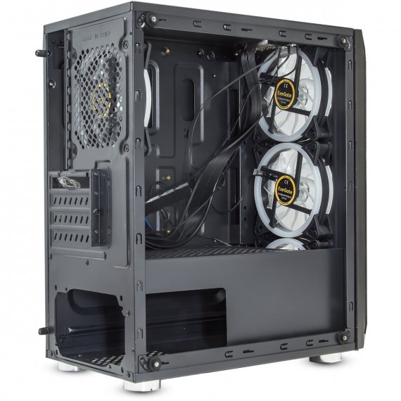 Корпус Minitower ExeGate Mistery R3 (mATX, без БП, 2*USB+1*USB3.0, аудио, черный, 4 вент. 12см с RGB подсветкой, боковая панель - закаленное стекло)