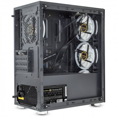 Корпус Minitower ExeGate Mistery X2-NPX400 (mATX, БП 400NPX с вент. 12 см, 2*USB+1*USB3.0, аудио, черный, 4 вент. 12см с RGB подсветкой, боковая панель - закаленное стекло)