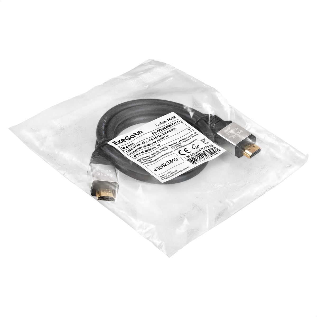 Кабель HDMI ExeGate EX-CC-HDMI8K-1.0 (19M/19M, v2.1, 1м, 8K UHD, Ethernet, позолоченные контакты)