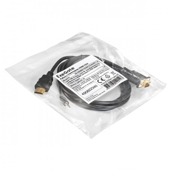 Кабель-переходник HDMI-VGA ExeGate EX-HDMIM-VGAM-3.5JackS-1.8 (19M/15M+3.5mm Jack M, 1,8м) Преобразователь цифрового HDMI сигнала в VGA видео и стерео-аудио