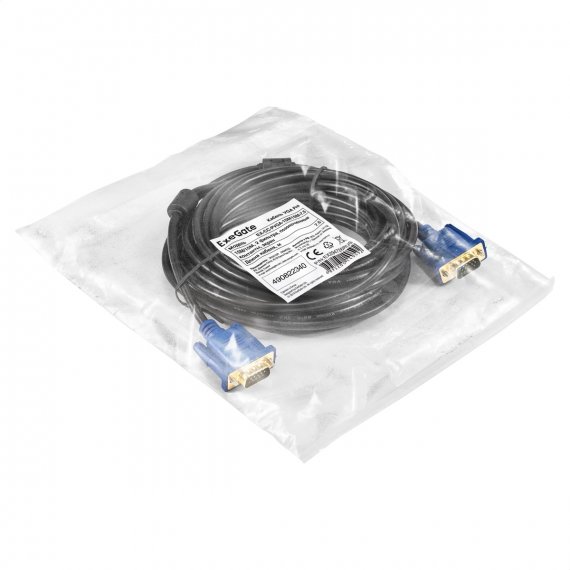 Кабель VGA Pro ExeGate EX-CC-PVGA-15M15M-7.5 (15M/15M, 7,5м, 2 фильтра, позолоченные контакты, экран)