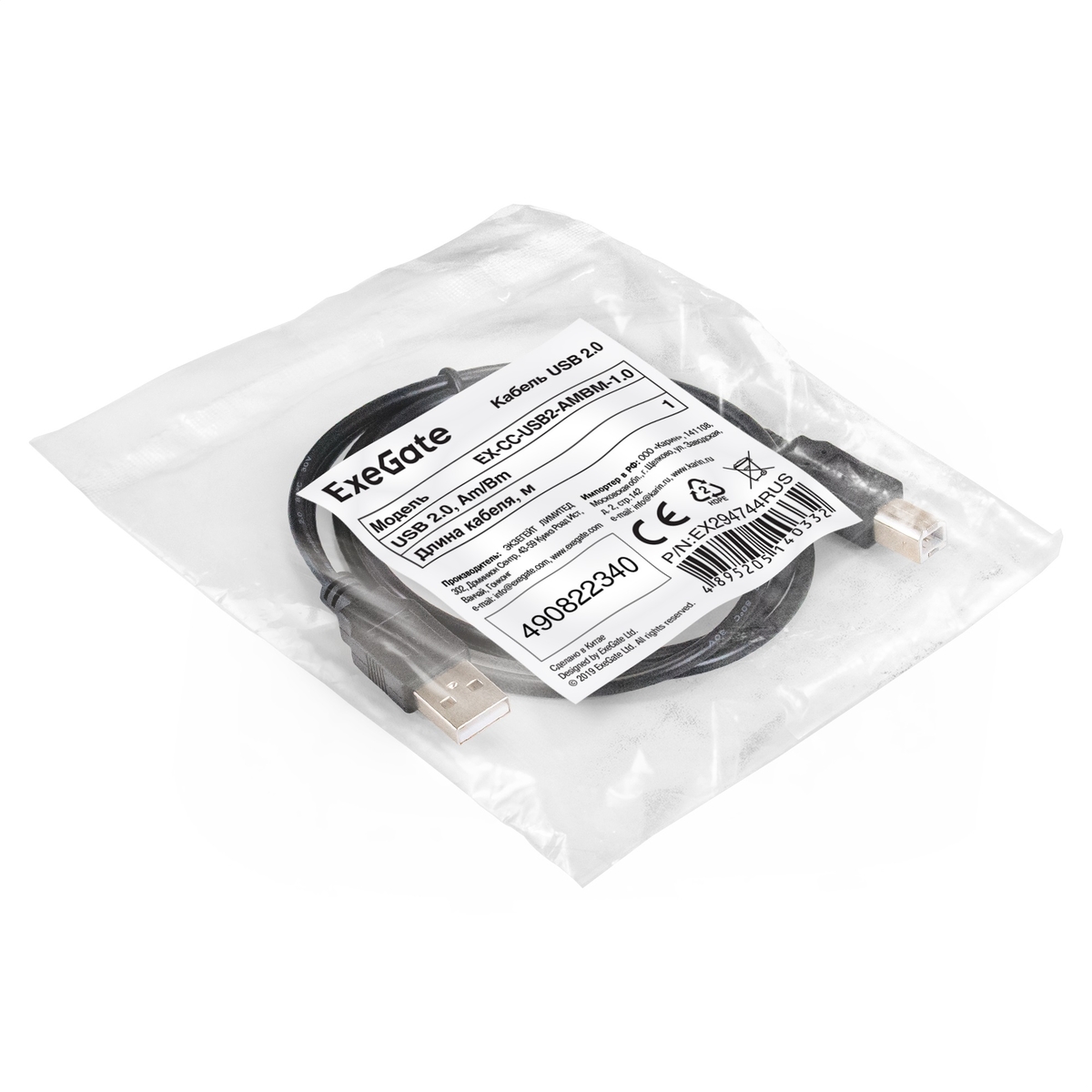 Кабель USB 2.0 ExeGate EX-CC-USB2-AMBM-1.0 (Am/Bm, 1,0м)