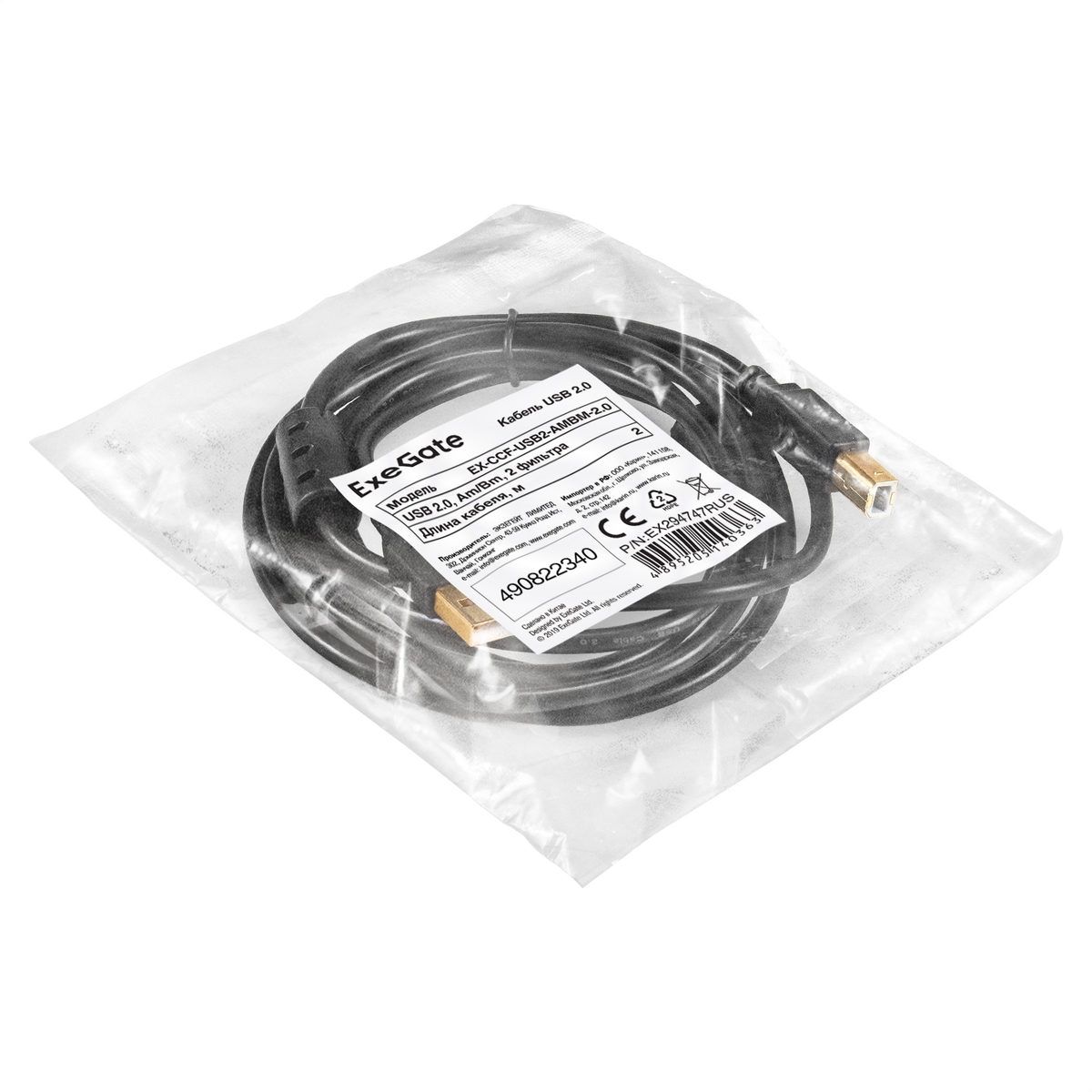 Кабель USB 2.0 ExeGate EX-CCF-USB2-AMBM-2.0 (Am/Bm, 2,0м, 2 фильтра)