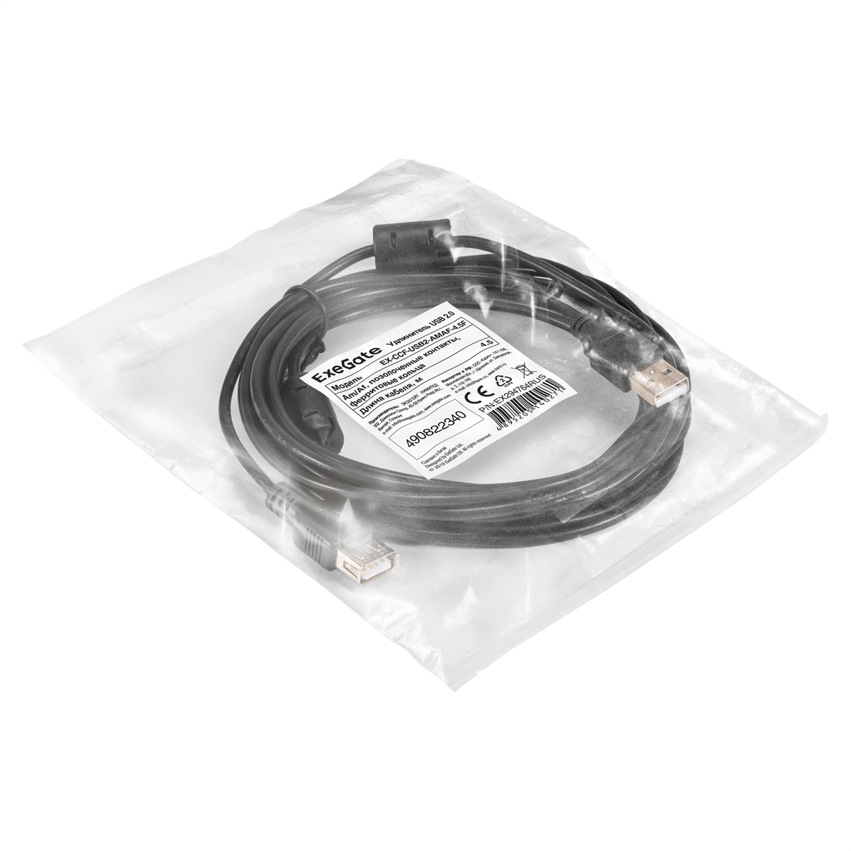 Удлинитель USB 2.0 ExeGate EX-CCF-USB2-AMAF-4.5F (Am/Af, позолоченные контакты, ферритовые кольца, 4,5м)