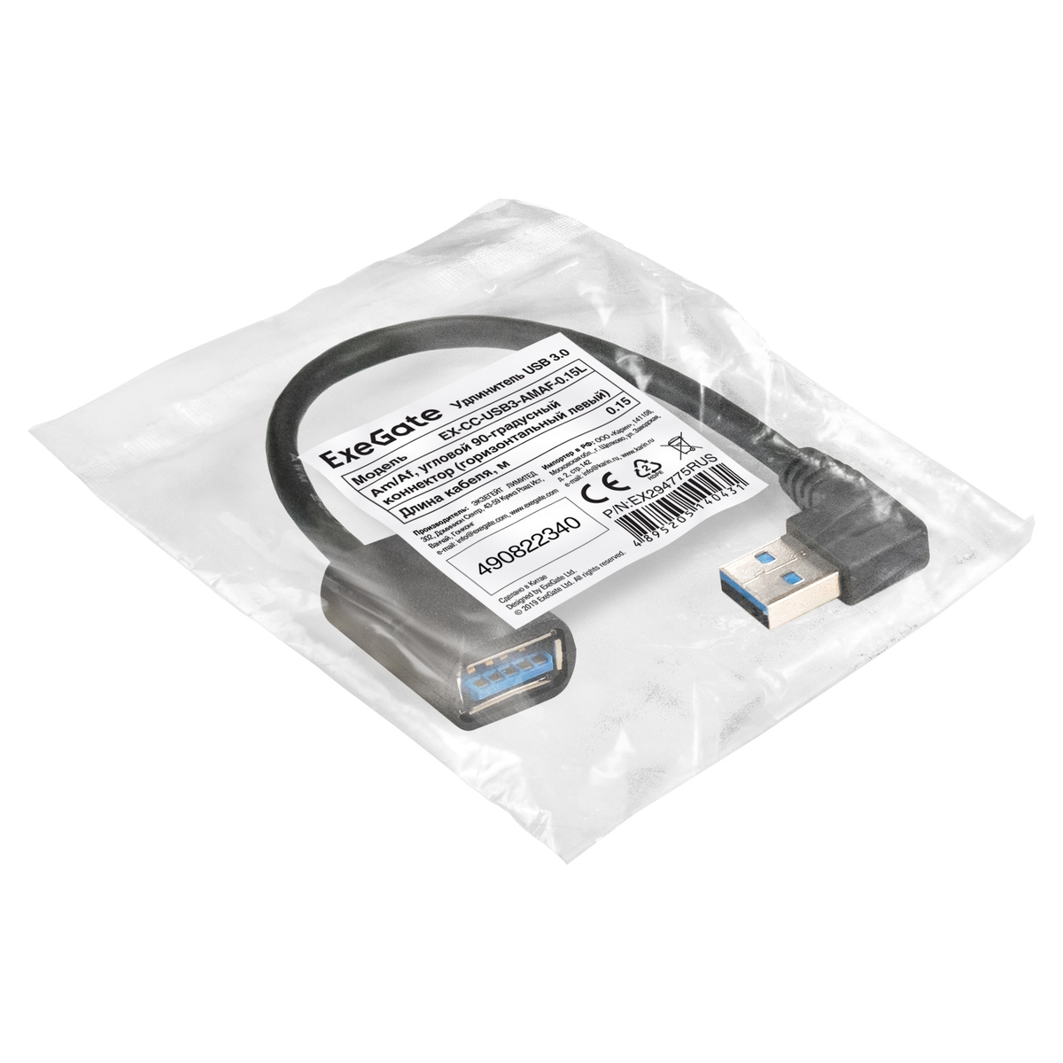 Удлинитель USB 3.0 ExeGate EX-CC-USB3-AMAF-0.15L (Am/Af, угловой 90-градусный коннектор (горизонтальный левый), 0,15м)
