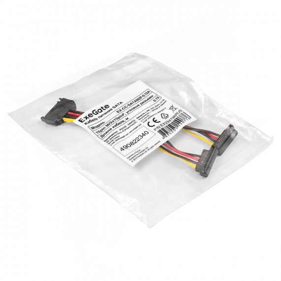 Кабель питания SATA ExeGate EX-CC-SATAM2F (15pin M/2x15pinF, угловые разъемы)