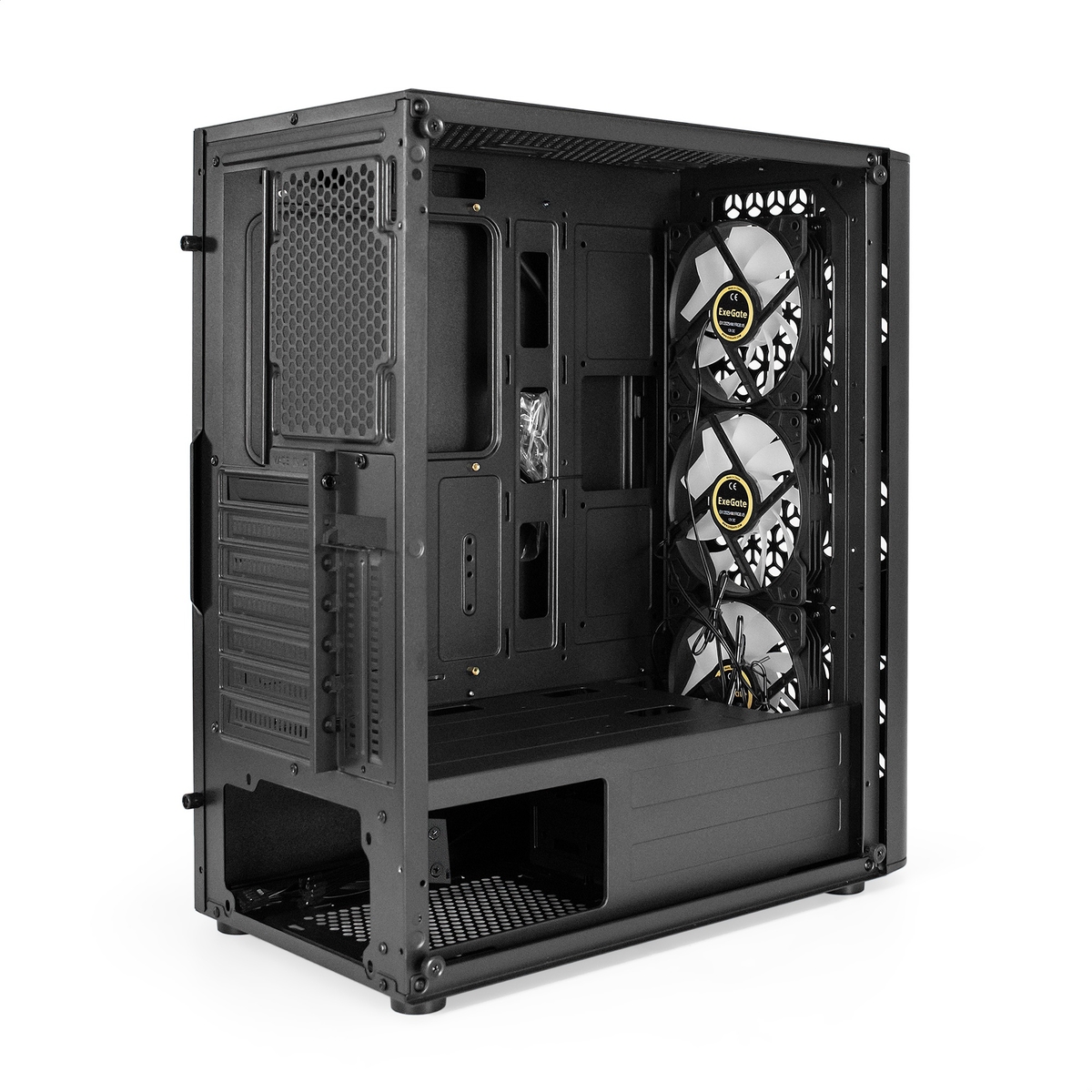 Корпус Miditower ExeGate EVO-9202 (ATX, без БП, с окном, 1*USB+1*USB3.0, аудио, черный, 3 вент. 12см с RGB подсветкой)