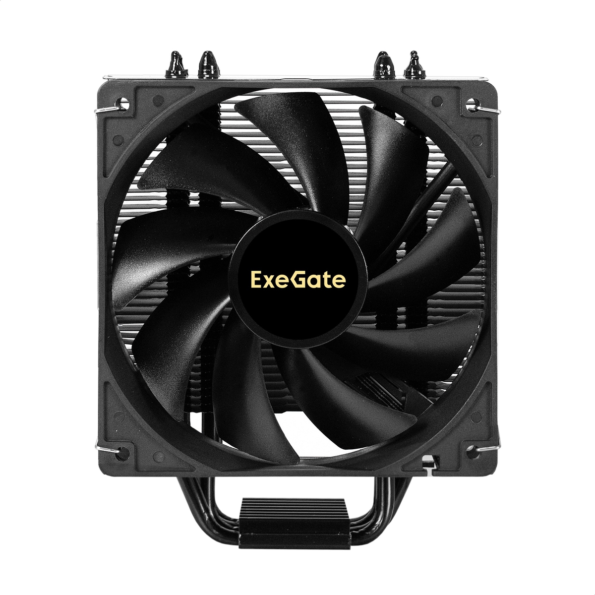 Кулер ExeGate Dark Magic EE400XL-PWM (Al+Cu, черное покрытие, 4 тепл.трубки, LGA775/1150/1151/1155/1156/1200/1700/1851/AM2/AM2+/AM3/AM3+/AM4/AM5/FM1/FM2/754/939/940, TDP 140W, Fan 120mm, PWM, 800-2400RPM, Hydro bearing, 4pin, 11-37db, 620г, с термопастой, на винтах, Color Box)