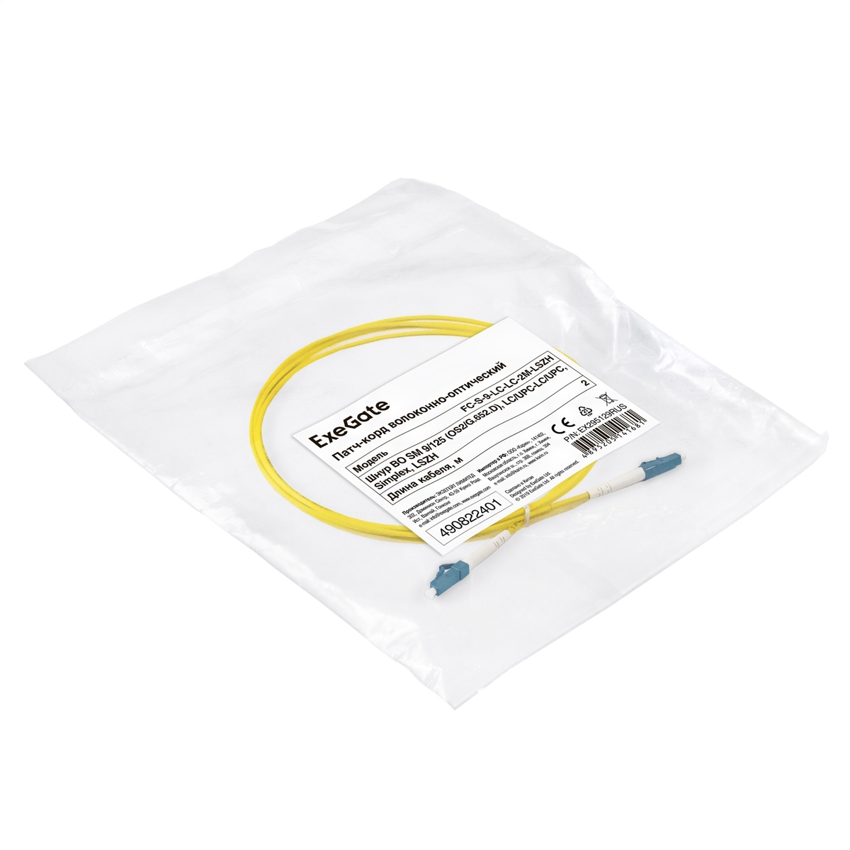 Патч-корд волоконно-оптический ExeGate FC-S-9-LC-LC-2M-LSZH (Шнур ВО SM 9/125 (OS2/G.652.D), LC/UPC-LC/UPC, Simplex, LSZH, 2м)