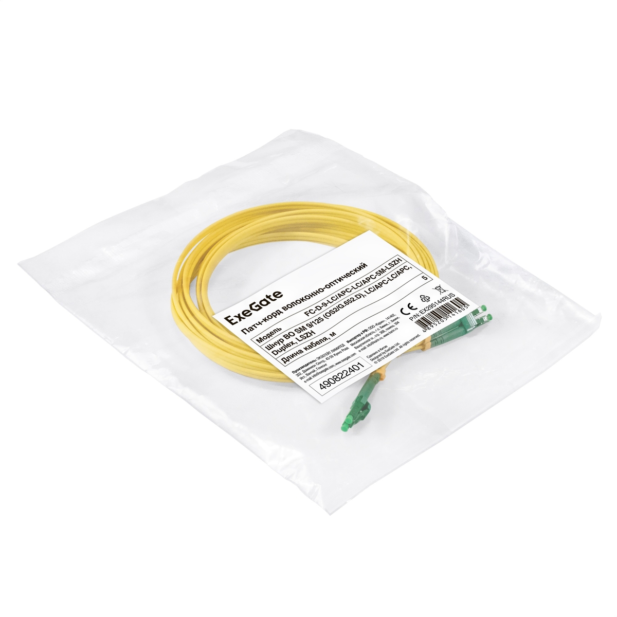 Патч-корд волоконно-оптический ExeGate FC-D-9-LC/APC-LC/APC-5M-LSZH (Шнур ВО SM 9/125 (OS2/G.652.D), LC/APC-LC/APC, Duplex, LSZH, 5м)