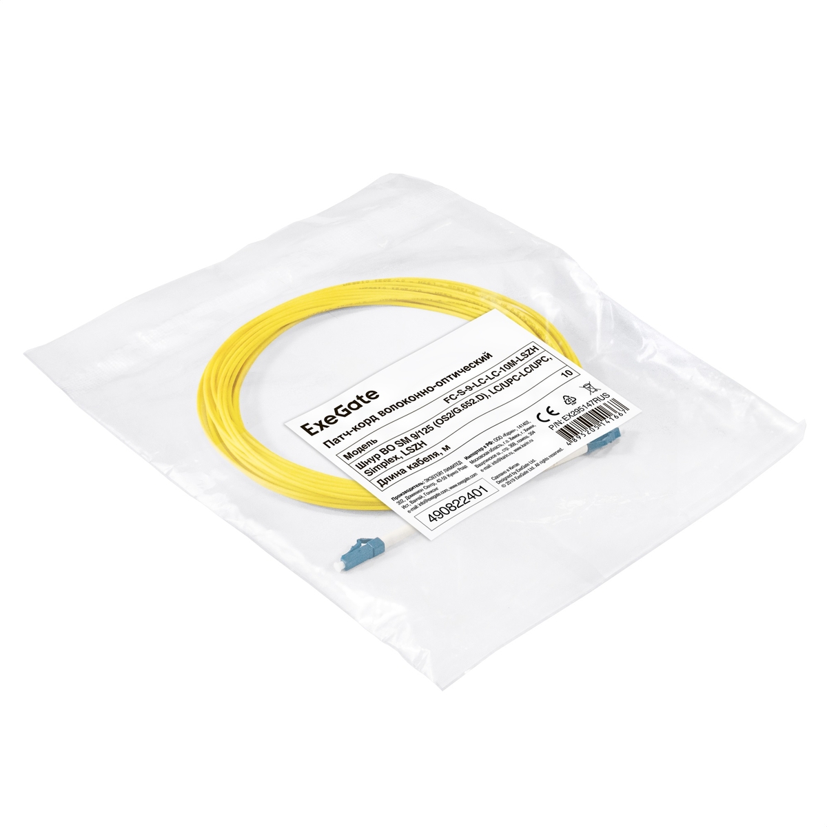 Патч-корд волоконно-оптический ExeGate FC-S-9-LC-LC-10M-LSZH (Шнур ВО SM 9/125 (OS2/G.652.D), LC/UPC-LC/UPC, Simplex, LSZH, 10м)