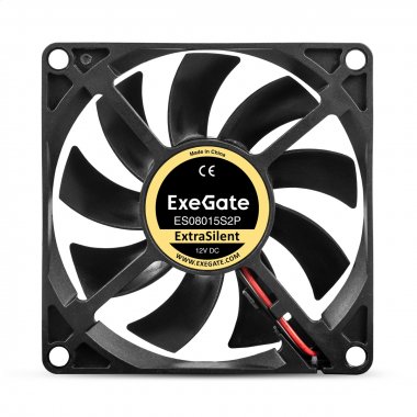 Вентилятор 12В DC ExeGate ExtraSilent ES08015S2P (80x80x15 мм, Sleeve bearing (подшипник скольжения), 2pin, 1600RPM, 16dBA)